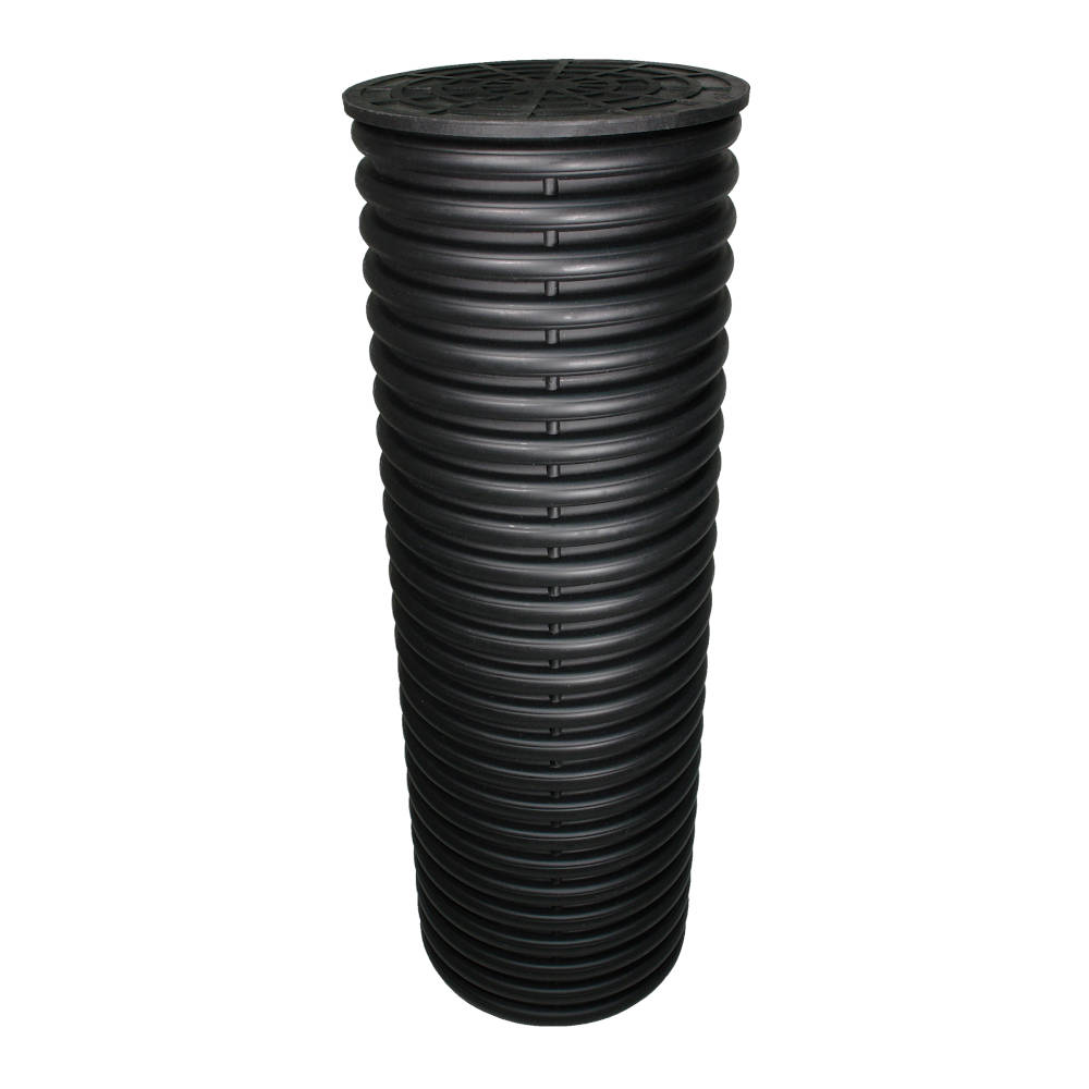 Колодец 340/300х1000 мм без отверстий, с приварным дном и полимерной крышкой, дренажный смотровой